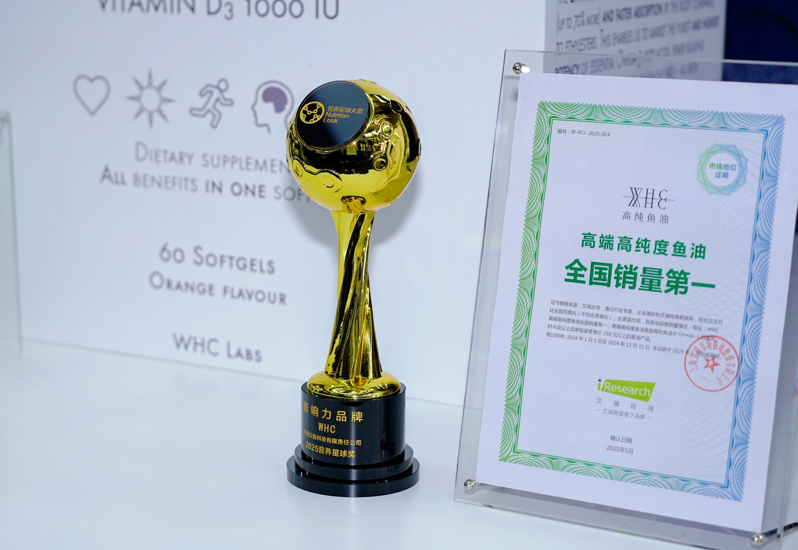 艾瑞咨询授予WHC “高端高纯度鱼油全国销量第一”认证
